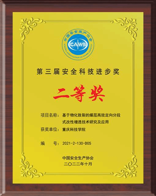 近日,中国安全生产协会发布《中国安全生产协会第三届安全科技进步奖获奖名单公告》,我校化学化工学院王猛博士参与,由中煤科工集团沈阳研究院有限公司牵头,山西煤炭运销集团长治有限公司、德矿事业( 北京) 科技有限公司、中国科学院武汉岩土力学研究所、重庆科技学院共同完成的“基于物化致裂的煤层高效定向分段式改性增透技术研究及应用”荣获二等奖。