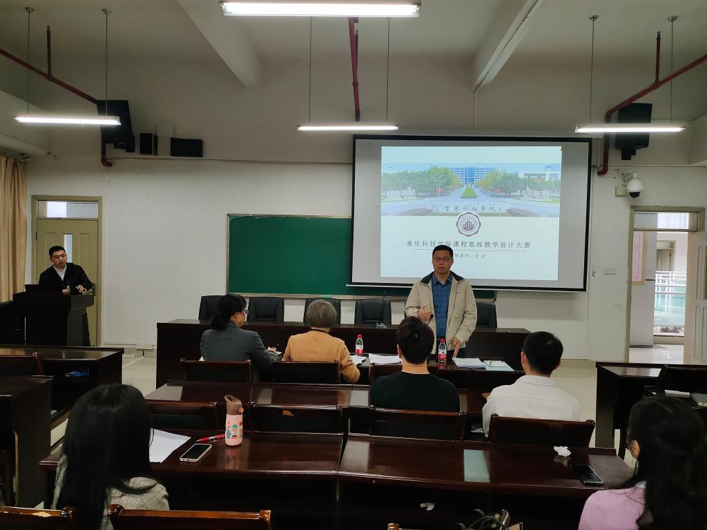 【教务办 张海涛】为深入贯彻落实习近平总书记关于教育的重要论述和全国教育大会精神,按照学校《关于开展重庆科技学院2022年课程思政教学设计大赛的通知》(教发函〔2022〕1号)的要求,我院于2022年4月15日在笃行楼k1020举行了2022年青年教师培训暨课程思政教学设计大赛,张莉书记、龙彦辉和唐然老师担任评委,丁皓、孟晓静、卢浩等十位中青年教师参加了本次大赛,大赛由学院副院长邱会东主持。