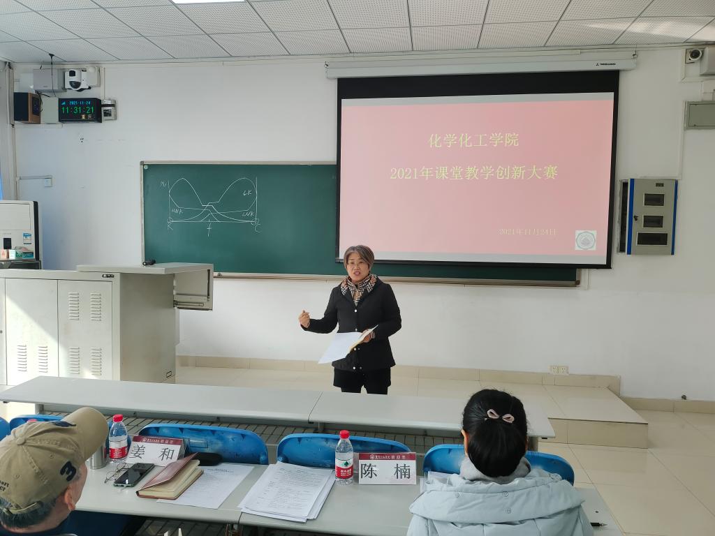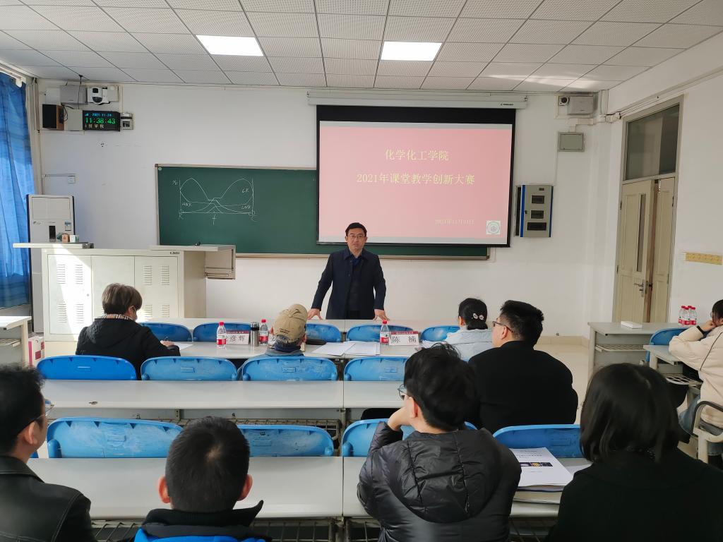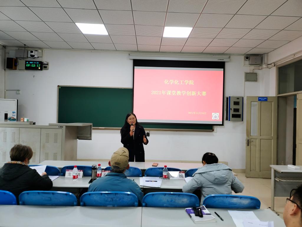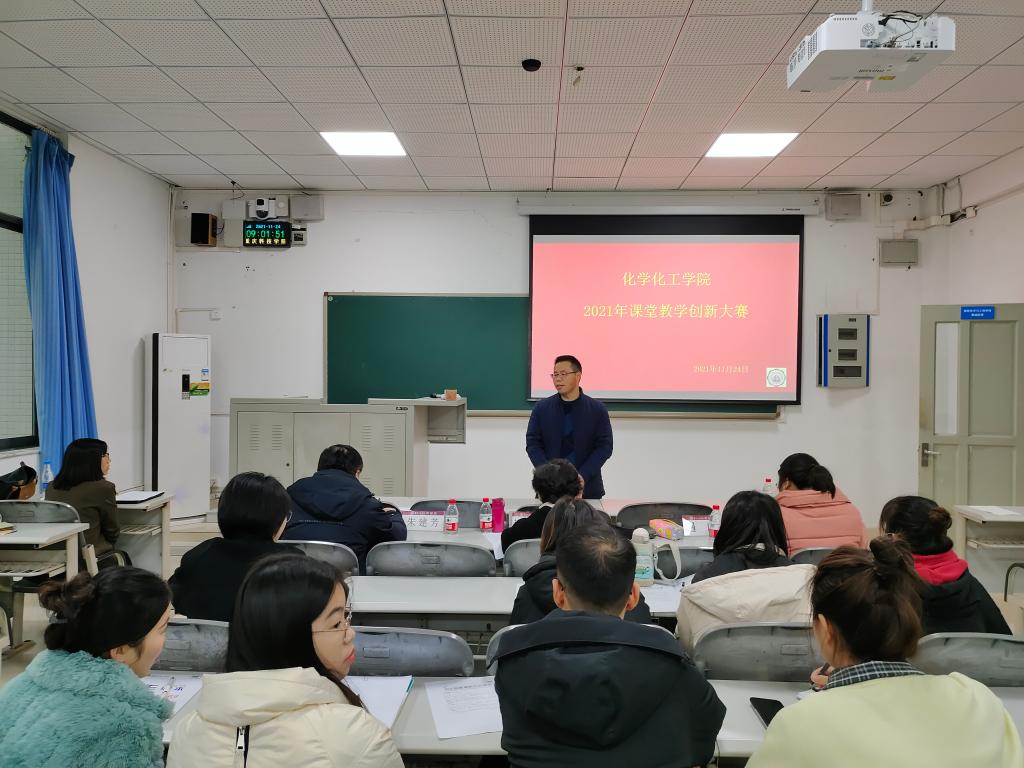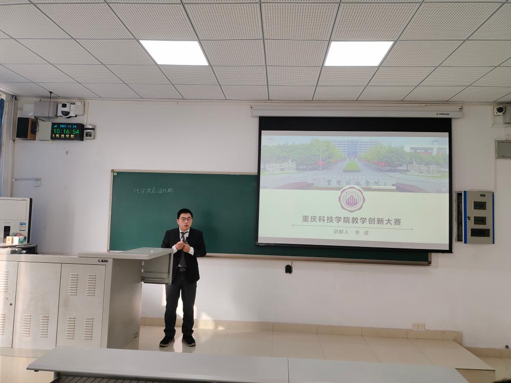 为强化学院中青年教师的教学能力,按照学校《关于开展重庆科技学院2021年教师教学创新大赛的通知》(教发函〔2021〕9号)的要求,我院于2021年11月24日在主教学楼B302/B307举行了2021年青年教师培训暨化学化工学院课堂教学创新大赛,朱建芳、赵同燕、遇丽、龙彦辉、姜和、陈楠六名教师担任评委,丁皓、汪勤、柴水琴、陈历波、范雨竹、暴丹、余波、屈龙六位教师参加了本次比赛,比赛由学院副院长邱会东主持。