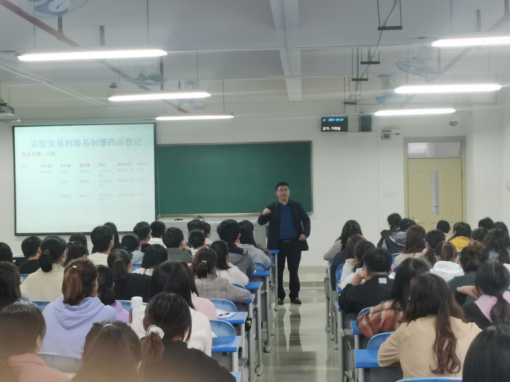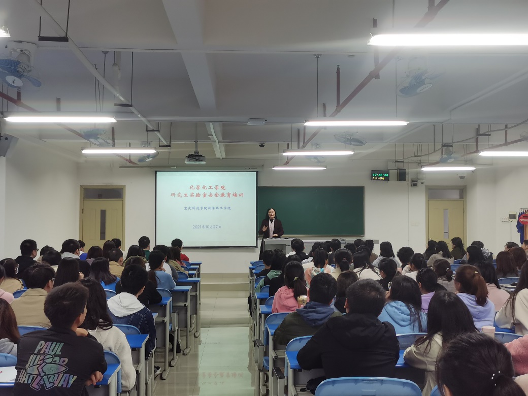 为加强化学化工学院实验室安全,保障全院师生生命财产安全,提高全体学生安全意识,10月27日下午16:00,化学化工学院在K808开展研究生安全教育专题会。化学化工学院熊伟院长、张莉书记和院长助理苏小东先后对实验室安全的重要性、实验室安全责任意识、实验室安全知识,实验室安全应急处理等方面进行分析,化学化工学院2020级和2021级全体研究生参加了此次安全教育会。