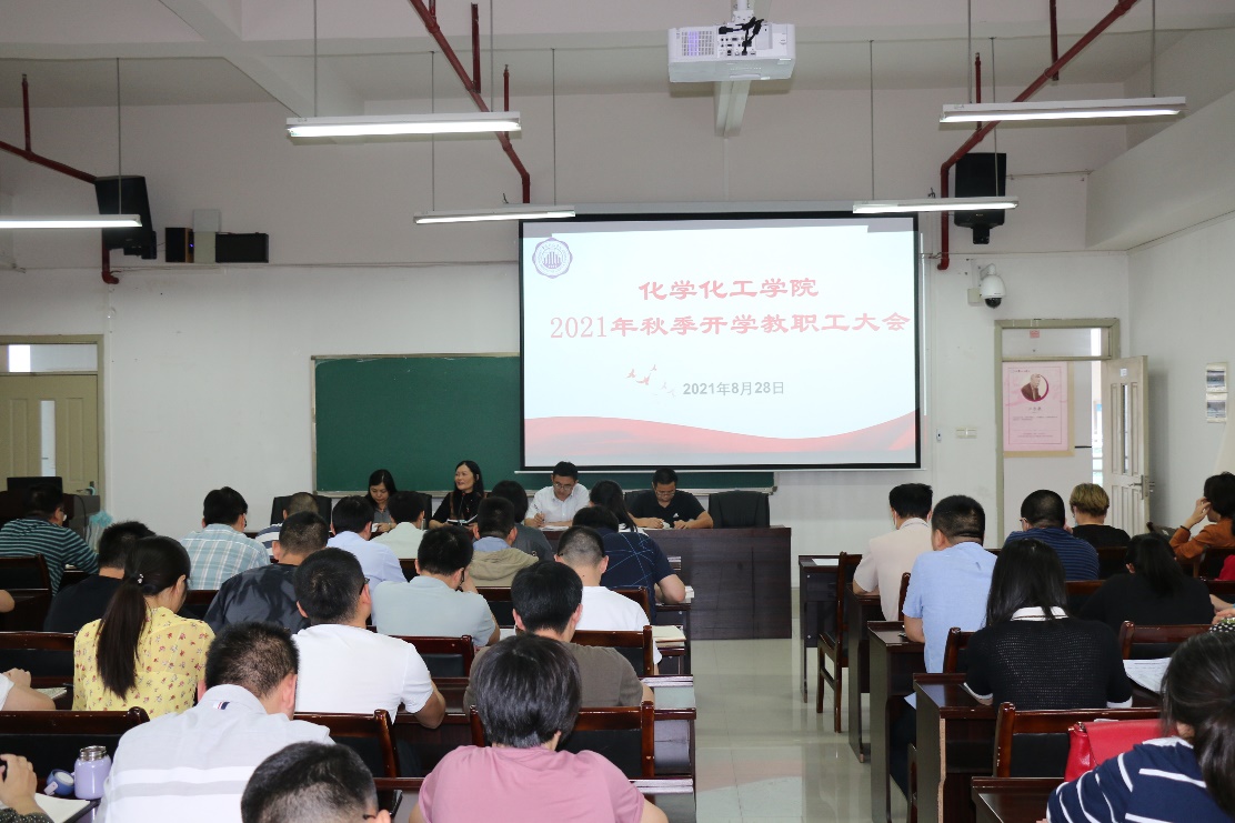 8月28日下午,化学化工学院在笃行楼1020会议室召开2021学年秋季学期开学职工大会。会议由学院党总支书记张莉主持。
