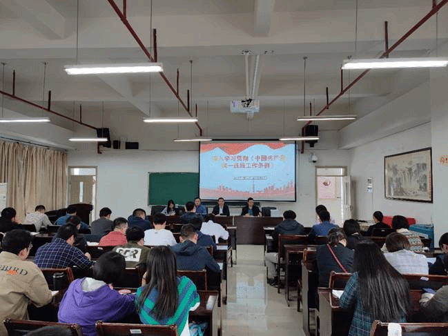 张强国书记带领教职工们学习了《条例》的整体框架、具体内容、新时代统一战线的重要地位、着力提高做好统一战线工作的能力素质。张强国书记指出:统一战线是中国共产党在中国革命中战胜敌人的三大法宝之一,是全面建设社会主义现代化国家、实现中华民族伟大复兴的重要法宝。我们要立足新的历史方位和使命任务,深刻认识新时代统一战线在党和国家事业发展全局中的重要地位作用。其次,指出只有真正掌握了马克思主义这一“看家本领”,做马克思主义的坚定信仰者、忠实实践者,才能不断增强“四个意识”、坚定“四个自信”、做到“两个维护”,善于从一般业务中发现政治问题、从倾向性苗头性问题中发现政治端倪,从根本上解决“谁统战谁”的问题。