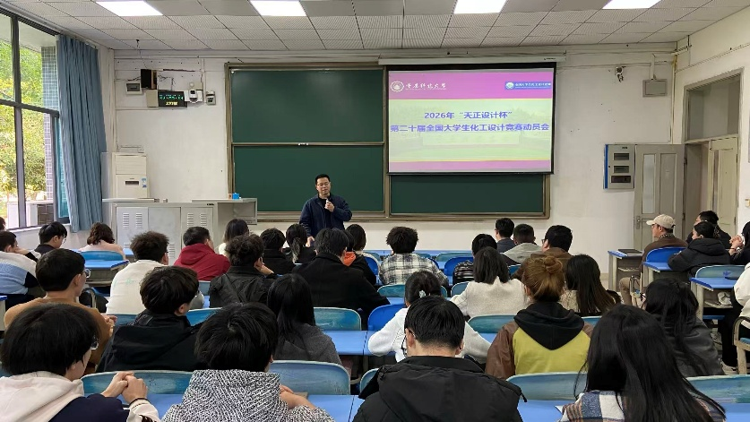 为全面激发学院学子工程实践潜能和创新活力,扎实推进高水平学科竞赛与人才培养深度融合,3月11日下午,化学化工学院在教学主楼A111教室隆重举行了2026年“天正设计杯”第二十届全国大学生化工设计竞赛动员大会。会议紧扣竞赛章程与备赛要点进行深度解读,系统分享实战经验,旨在进一步动员全院优秀学子奋勇投身国家级学科竞赛,以赛促学、以赛促教。