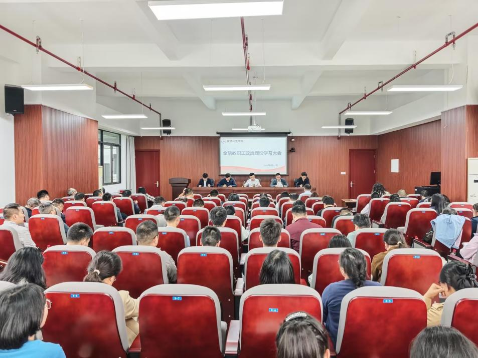4月15日下午,化学化工学院在笃行楼K1020会议室召开2026年4月全院教职工政治理论学习大会。会议由党总支书记杨睿宇主持。