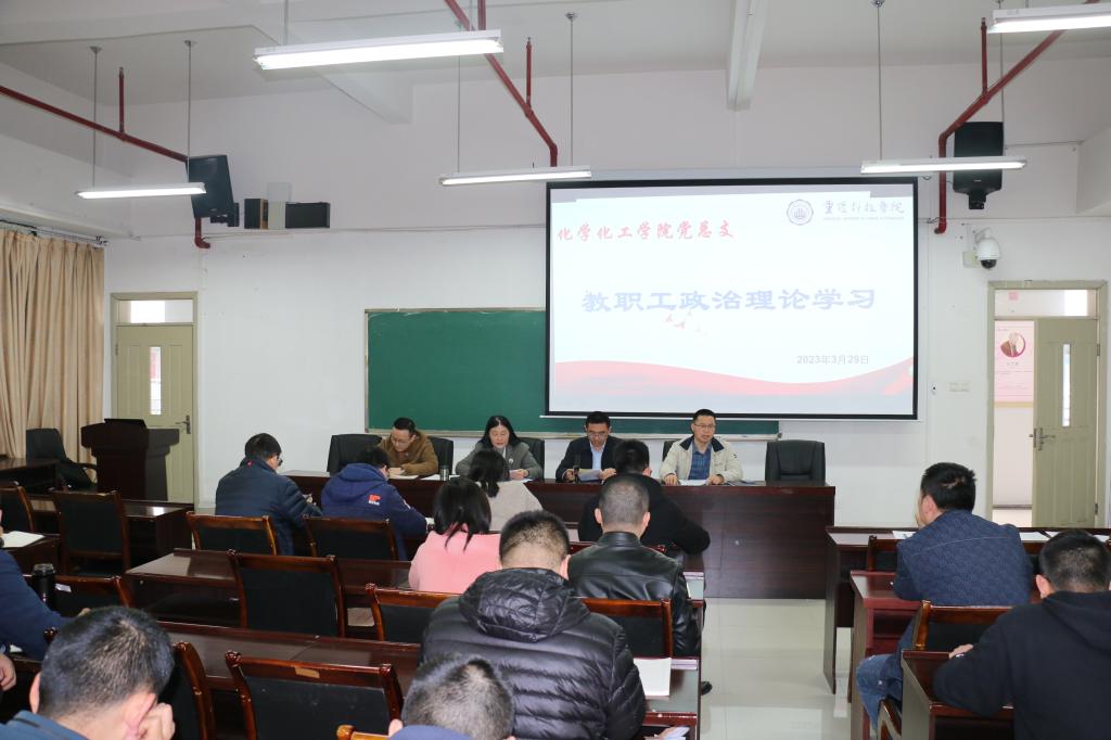 329日下午,化学化工学院在笃行楼K1020会议室组织召开教职工政治理论学习会,学院全体教职工参加会议。会议由党总支书记张莉主持。