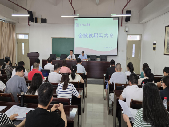 78午,化学化工学院在笃行楼k1020会议室召开2025年7月全院教职工政治理论学习大会。学院全体教职工参会,会议由党总支书记杨睿宇主持。