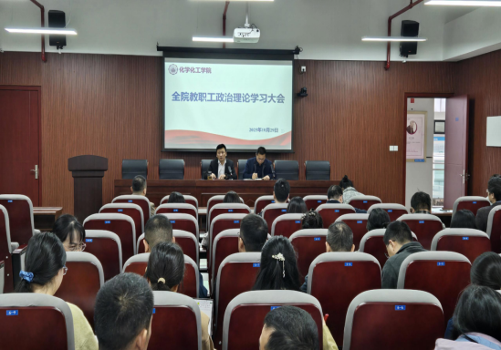 10月29日下午,化学化工学院在笃行楼k1020会议室召开2025年10月全院教职工政治理论学习大会。会议由党总支书记杨睿宇主持。