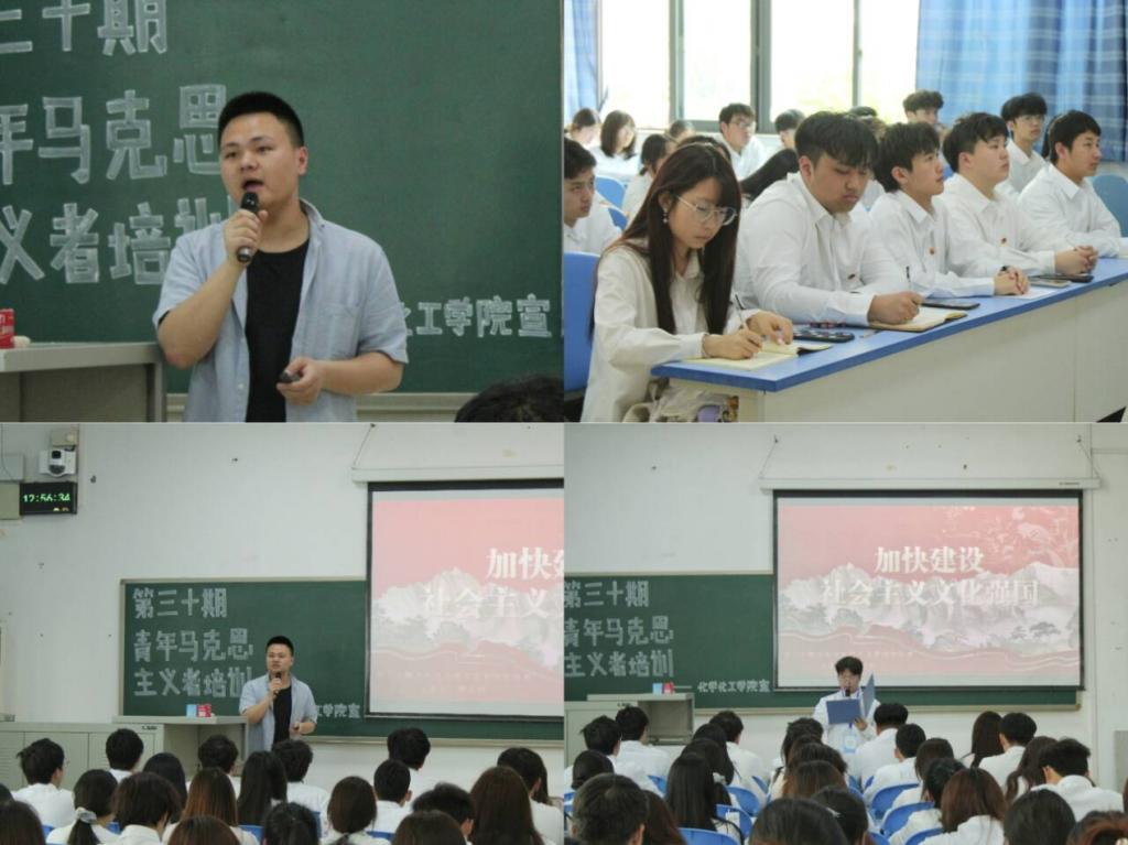 为深入贯彻落实全国高校思想政治工作会议精神,推动落实学校关于“三全育人 从我做起”主题活动的要求,深化“青马工程”育人功能,4月16日下午,化学化工学院在教学主楼D101开展第三十期“青年马克思主义者团学培训”第二讲。化学化工学院辅导员邱友灯以“加快建设社会主义文化强国”为主题进行培训,共计70余名学生参与此次培训。