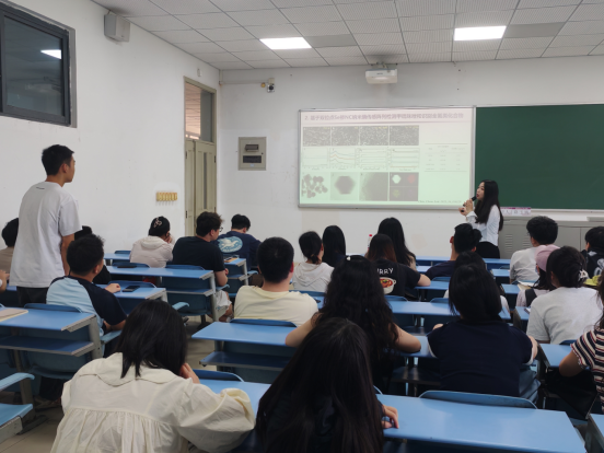 报告围绕掺杂调控策略增强纳米酶的催化活性和特异性以及合理构建基于单纳米酶的传感器阵列主题,阐述了不同掺杂元素对纳米酶催化特异性的影响,以及如何利用纳米酶的类酶活性构建高效的传感器阵列,探讨了纳米酶催化活性位点和类酶催化种类的内在联系以及酶催化活性和材料结构的构效关系,加深了同学对纳米酶催化性能优化和传感器阵列构建策略的认识。最后,与会师生针对报告主题,就自身科研中的难点与老师展开了深入交流,对实际科研问题的解决提供了极具价值的思路与建议。
