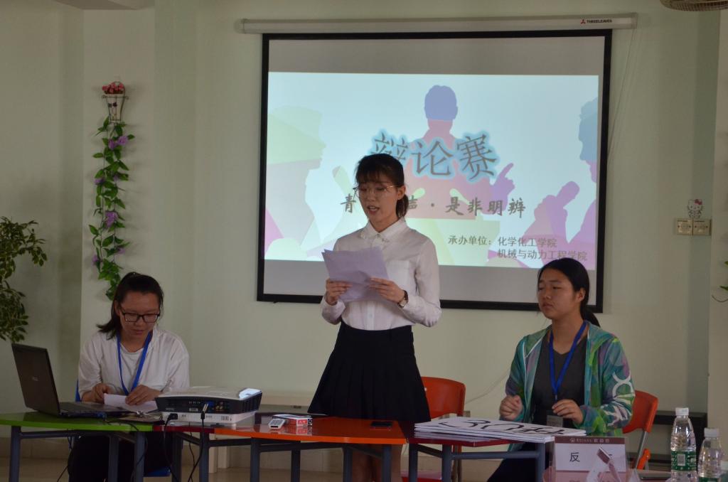 由校团委主办,化学化工学院与机械动力工程学院承办的“青年之声,明辨是非”大学生辩论赛于4月18日下午在禾园E0004、E0006、H1006活动室正式拉开帷幕,各学院主席团及九思辩论协会干部出席本次复赛并担任评委。